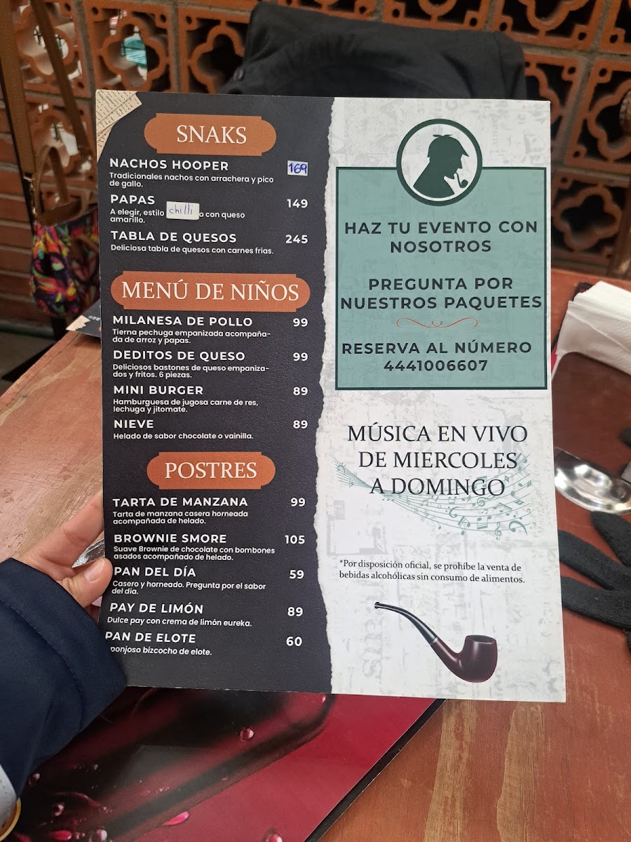 Welcome to Sherlock’s House, a hidden gem in De Tequisquiapan, located at Mariano Arista 926. This vibrant venue not only serves up comforting dishes but also thrives on its lively atmosphere. Patrons rave about the great food and excellent service, making every visit feel special.